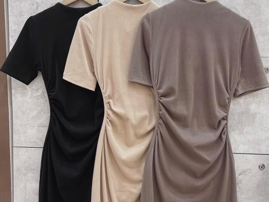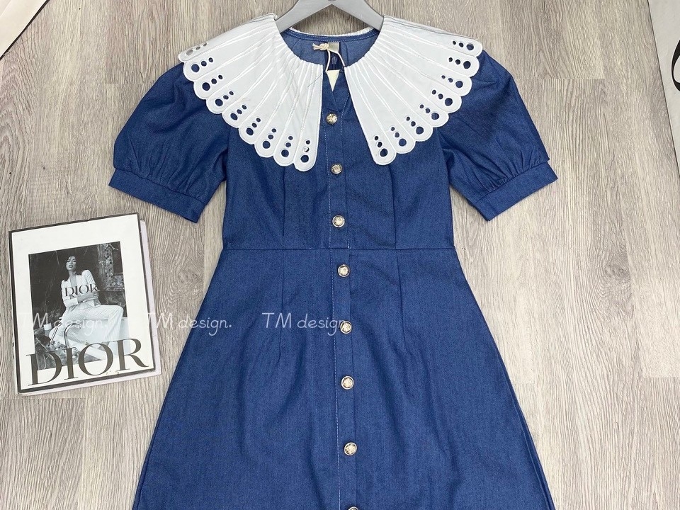 Váy dạ khuy cổ đen