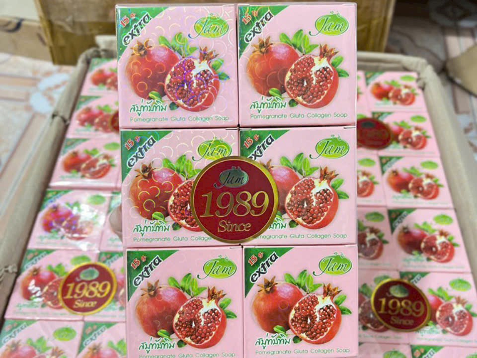 Lốc 12 bánh xà phòng Jam tinh chất lựu giảm mụn trắng sáng da thái lan chính hãng
