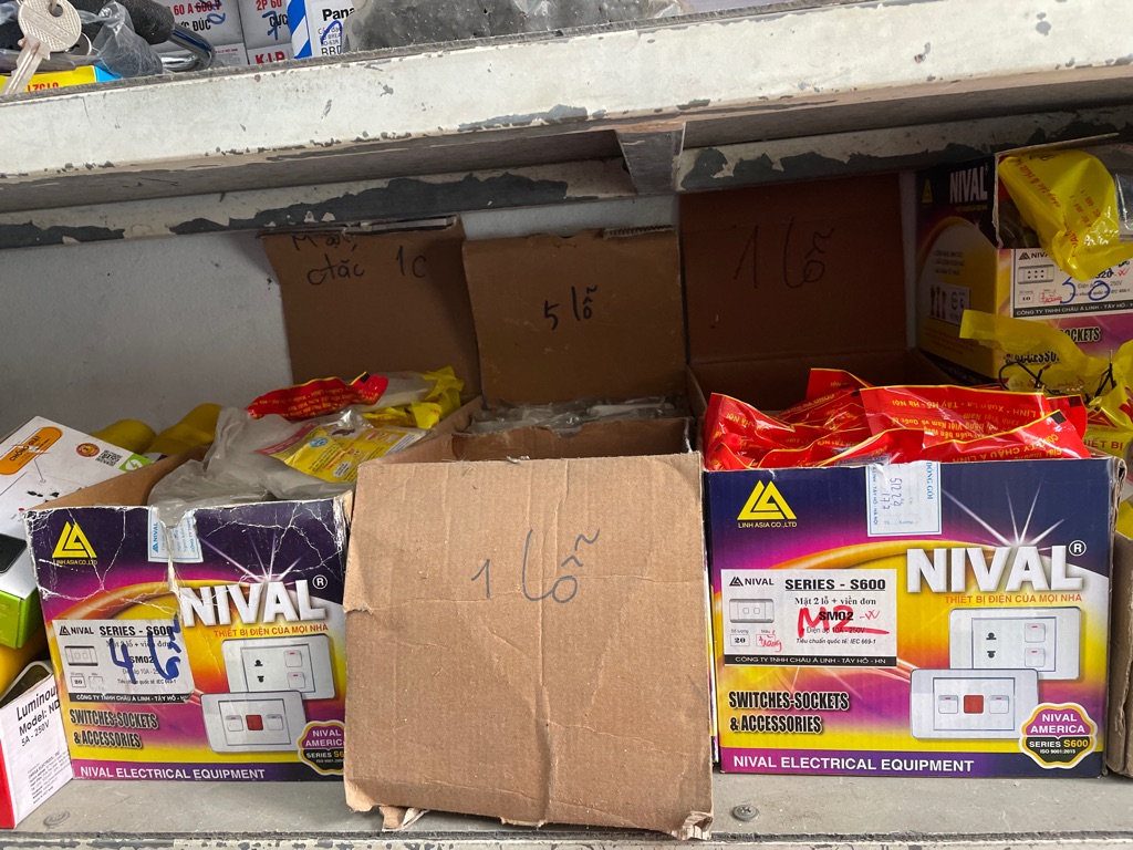 Cửa hàng bán bao gồm ống nước pc . Vòi nhựa. Ốc vít. Mũi khoan . Đồ điện thông dụng. Các vật liệu xây dựng cơ bản .