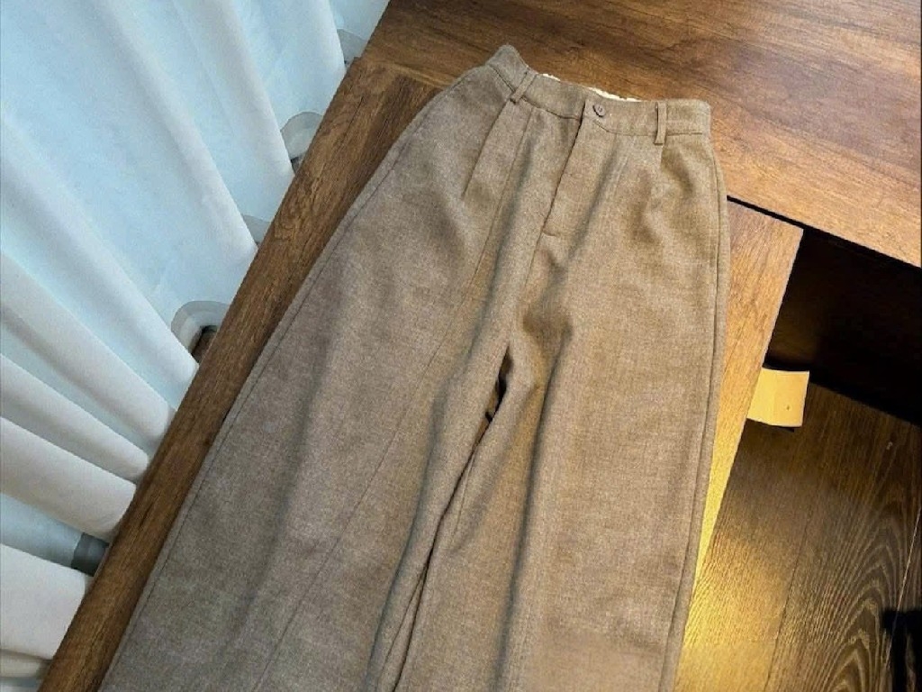 Quần suông cạp cao chất da