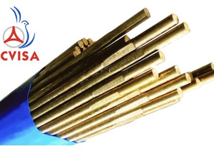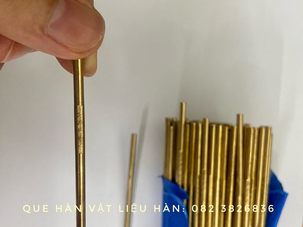 QUE HÀN ĐỒNG THAU Size: 3.2 Dài: 500mm Đóng gói: 5kg/bó Nhãn hiệu: china Tiêu chuẩn: HS221- thành phần hóa học: Cu- Zn- Si-Sn; tạp chất Ứng dụng: hàn GAS các chi tiết bằng đồng thau+ hàn the.
