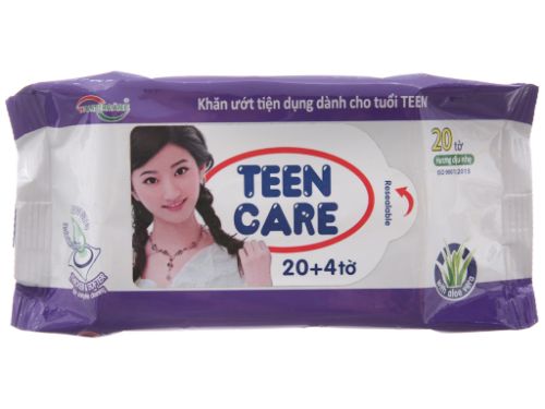 Khăn ướt Teen Care tím hương dịu nhẹ gói 20 miếng (tặng thêm 4 miếng)