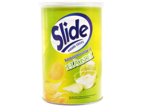 Snack khoai tây vị kem chua và hành Slide lon 75g