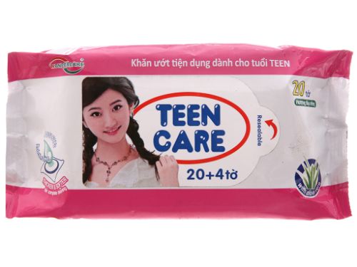 Khăn ướt Teen Care hồng hương dịu nhẹ gói 20 miếng (tặng thêm 4 miếng)