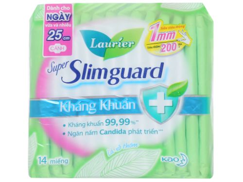 Băng vệ sinh Laurier Super Slimguard kháng khuẩn siêu siêu mỏng có cánh 14 miếng